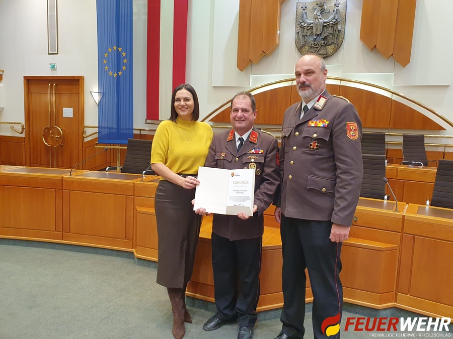 Am Donnerstag, dem 04.12.2025, fand im Landtagssaal in Eisenstadt die diesjährige Ehrung engagierter Freiwilliger statt. Die Feuerwehr Holzschlag wurde dabei von Landtagspräsidentin Astrid Eisenkopf für ihre besonderen Leistungen und ihren wertvollen Beitrag zum Wohl der Gesellschaft ausgezeichnet.