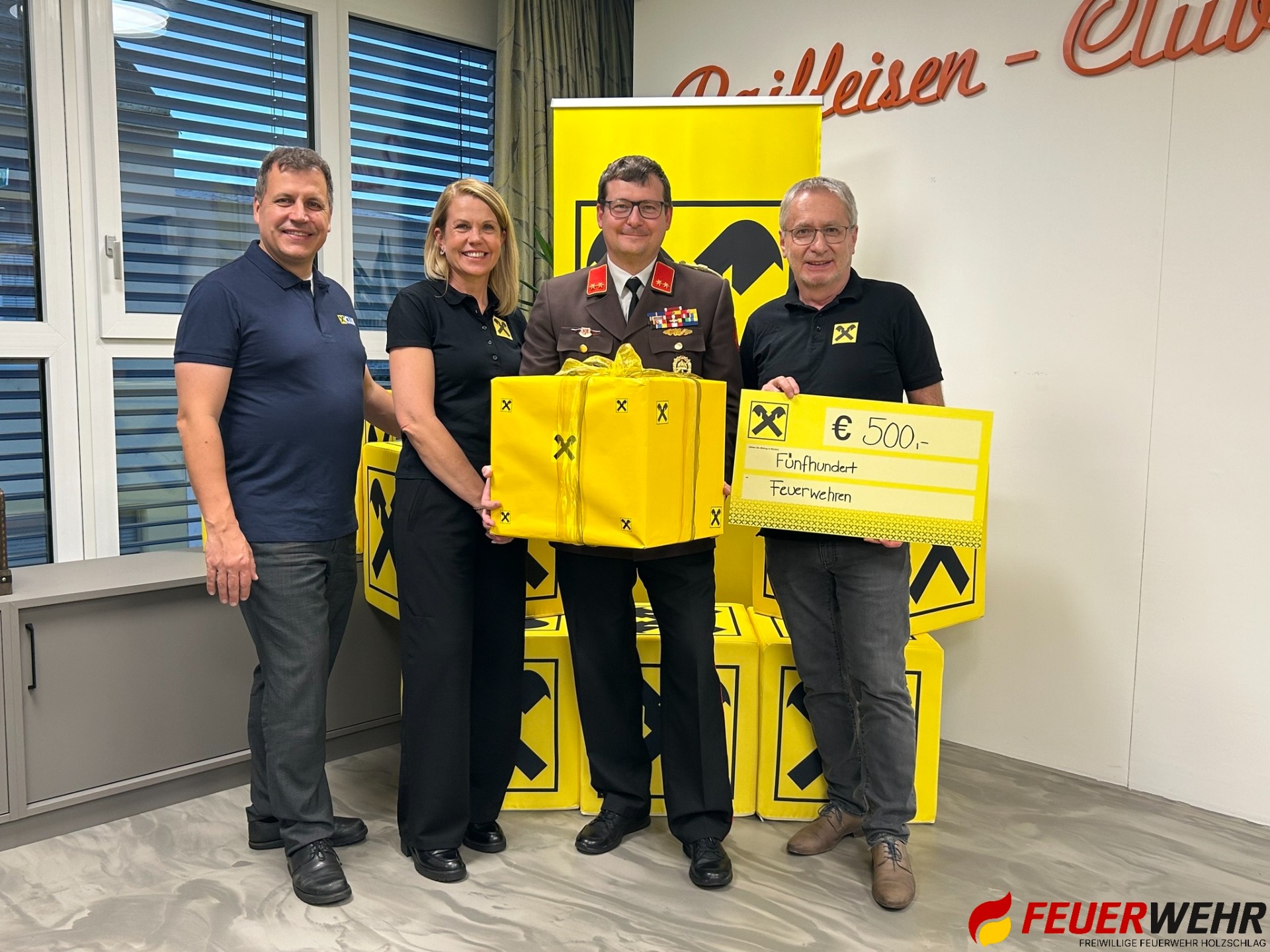 Die Freiwillige Feuerwehr Holzschlag bedankt sich bei der Raiffeisenbank